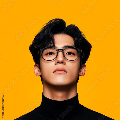 Stylish Professional: A modern portrait of a young professional exudes confidence and intelligence with glasses. He is looking directly at the viewer and presenting a compelling style.
