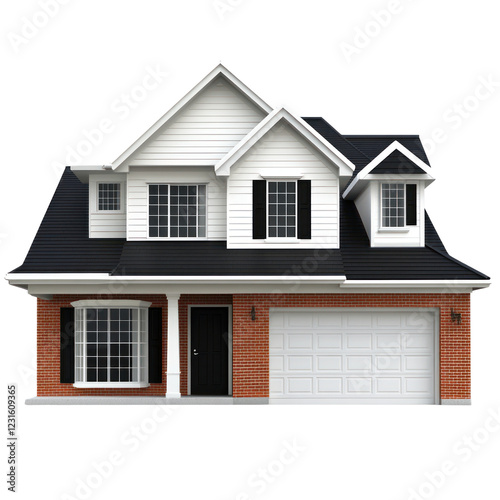 Stylish two story residence showcasing brick and siding architecture, isolated on a transparent background, png, alpha