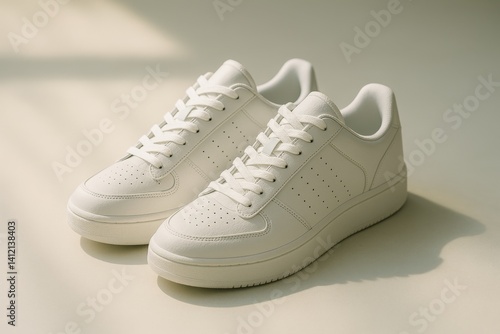 Stylish White Athletic Shoes Showcased on a Neutral Background for a Trendy Footwear Collection