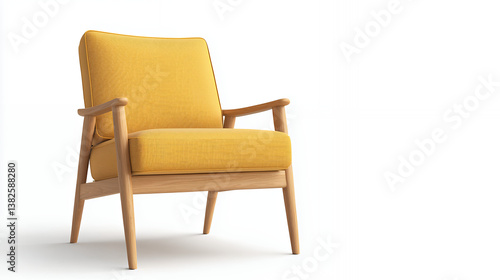 stylish yellow armchair with wooden legs, perfect for modern interiors, offering comfort and pop of color to any space