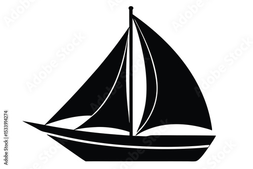 Stylized Black Silhouette of a Sailboat with Two Sails on White Background