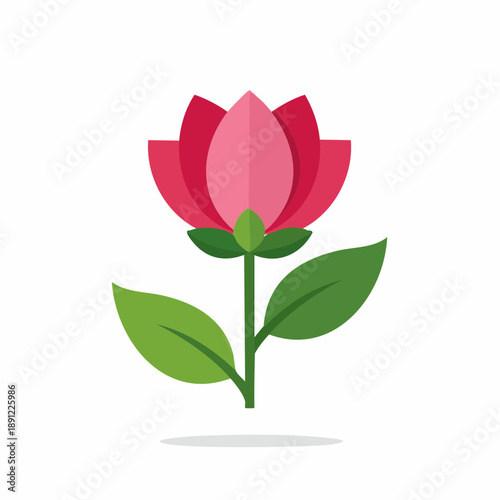 Stylized Blooming Flower Illustration with Pink Petals and Green Leaves on a Stem