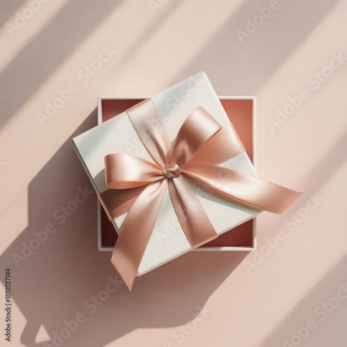Stylized present box with satin bow and pastel tones — upscale holiday or birthday packaging.