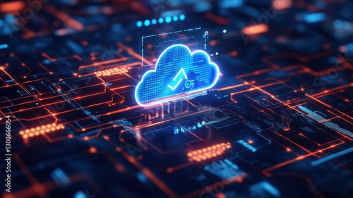 Stylized technology concept of a cloud software update, featuring sync symbols and digital progress bars