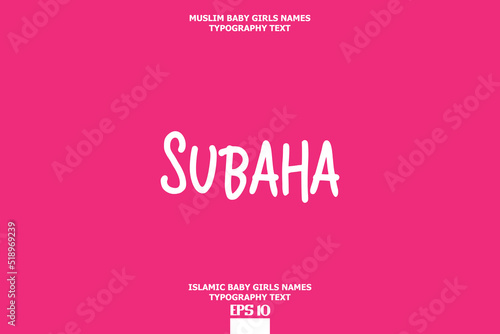 Subaha Arabic Girl Name Text Lettering Vector Sign