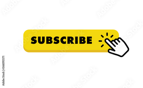 Subscribe button with hand click icon. Finger pointer clicking web site call to action. Clic vector.