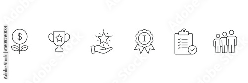 Success and Growth Editable Icons set. Set of outline icons related to progress, career, growth, profit and others. Success outline icons collection. Vector illustration.