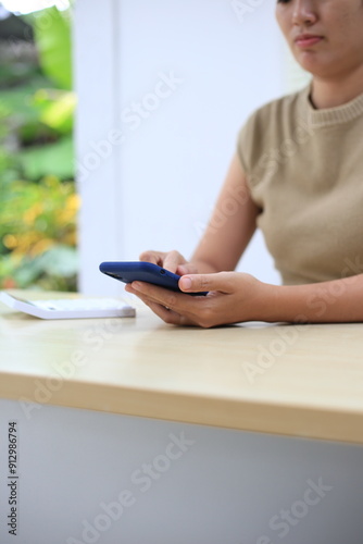 Successful Asian businesswoman sitting at desk working using laptop computer in office. Business and people concept. Businesswoman using laptop computer and working with documents.