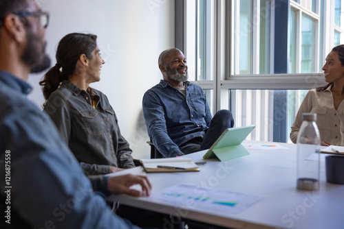 meeting, business, boardroom, boardroom, leadership, teamwork, businessman, executive, senior, mature adult, corporate, multiracial, diversity, equality, success, confidence, achievement, ceo, owner, relaxed, retirement, discussion, cooperation, colleague, sitting, planning, celebration, strategy, growth, presentation, finance, economy, banking, conference room, communication, businesswoman, african american, black, indian, yellow, blue, modern, office, building, window, copy space