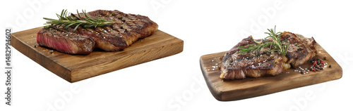 Succulent Grilled Steak With Fresh Herbs On Wooden Platter Isolated On Transparent Background
