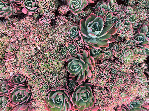 Succulent plants garden floral background. Top View.