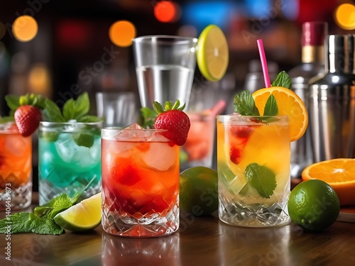 Summer Beach Party with Cocktails A table stocked with several beverages