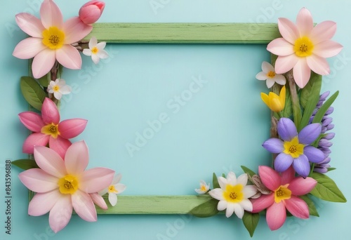 Summer Floral Frame, Pastel Beautiful Spring Template, Text Background, Copy Space.