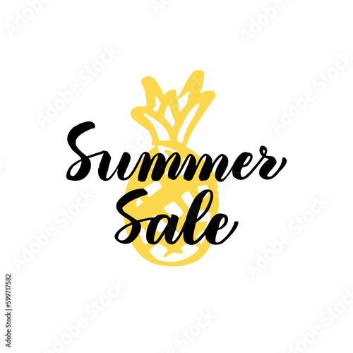 Summer Sale Lettering. Vector Illustration of Calligraphy and Pineapple Fruit Design Element.