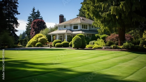 summer, sunny, lawn, illustration, sunshine, grass, garden, landscape, greenery, nature, outdoors, relaxation, beauty, sunlight, serenity, peaceful, vibrant, manicured, hedge, flower, elegance, calmness, order, sophistication, country, house, shadow, mowed, line, contrast, colours, lush