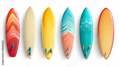 Summer surfboard elements vector set design. Summer surfboard 3d realistic element colorful collection for water sport activity isolated in white background. Vector illustration summer beach