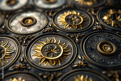 metal plate, astronomic, celestial, solar system, metallic, decorative, design element, pattern, motif, geometric, abstract, symbolism, mythology