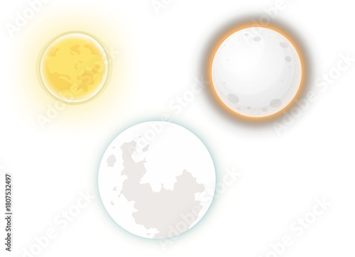 Sun and moon phases isolated on transparent background
