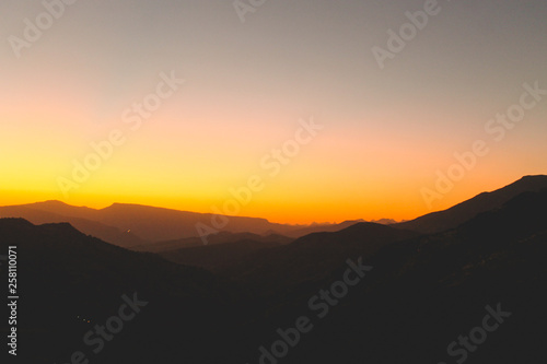 sunset, heaven, mountain, sunrise, countryside, sun, nature, cloud, orange, morning, fog, evening, pretty, sunlight, dusk, silhouette, dawn, light, hill, sunset, red, yellow, blue
