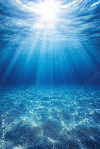 Sunlight Beams Through Ocean Water, Illuminating Sandy Bottom, Vibrant Underwater Scene