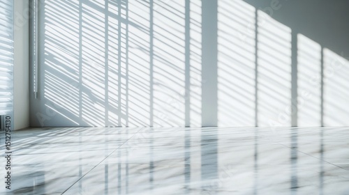 Sunlight filters through blinds onto a polished marble floor in a minimalist office space. generative ai
