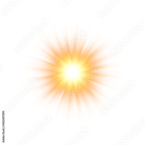 Sunlight lens flare, sun flash with rays and spotlight. Gold glowing burst explosion