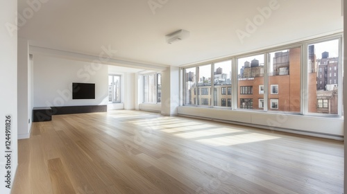 apartment, city, modern, interior, room, home, house, building, window, view, floor, wood, sunlight, light, design, space, empty, living, real, estate, architecture, residential, contemporary, style, bright, clean, roomy, luxury, open, plan, large, wall, ceiling, urban, panorama, daylight, minimal, simple, decor, property, background, texture, blank, white