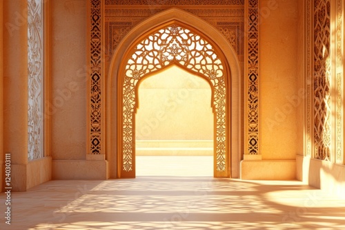 Sunlit Islamic Architecture: Intricate Carvings and Golden Hues