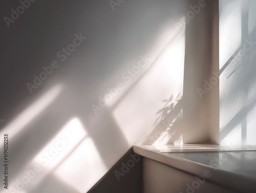 light, shadow, wall, corner, window, geometry, pattern, texture, abstract, sunlight, sunbeam, bright, interior, white, architecture, design, minimalist, modern, art, contrast, illumination, surface, shape, form, building, room, structure, line, diagonal, vertical, rectangle, square, plant, silhouette, indoor, space, perspective, depth, neutral, tone, simplicity, clean, fresh, serene, peaceful, calm, quiet, tranquil, elegant