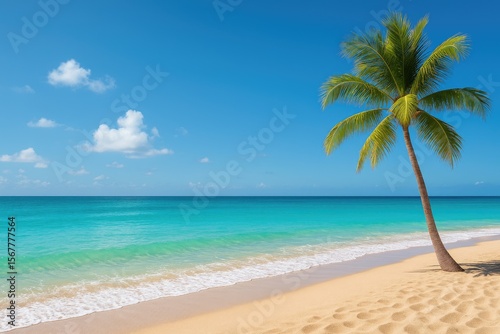 Sunny day at the coast featuring a vibrant turquoise sea and a clear blue sky