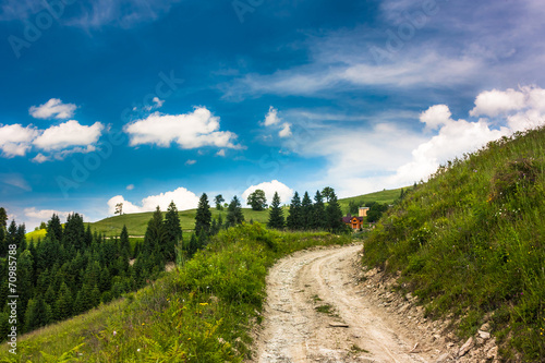 Sunny landscape in mountains with blue sky and clouds