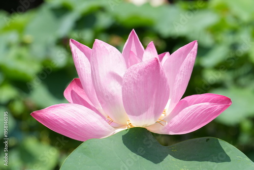 Sunny Pink Lotus Flower Closeup-Nelumbo nucifera'Gudai Lian'; Fresh Pink Lotus Flower under the Sun; The Blooming Pink Lotus Flower