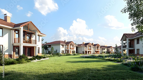residential, house, home, property, community, suburb, architecture, row house, complex, modern, building, exterior, estate, lawn, garden, tree, sky, cloud, sunny, day, light, view, peaceful, quiet, nature, landscape, house, cosy, bungalow, townhome, villa, village, neighbourhood, development, real estate, homestead, subdivision, condo, duplex