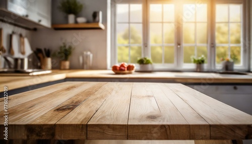 Sunny Stillness: Wood Table Amidst Modern Kitchen