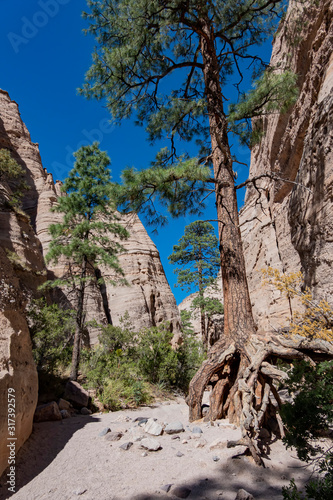 adventure, afternoon, america, blue skies, canyon, countryside, exterior, hiking, landmark, landscape, national landmark, natural, nature, land of enchantment, park, rural, sunny, trail, travel, tree, us, us