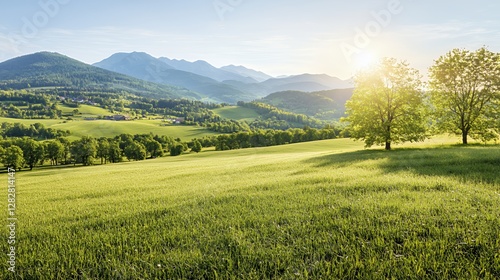 landscape, nature, sunrise, mountain, field, green, tree, sunlight, countryside, rural, scenery, summer, morning, peaceful, tranquil, serene, calm, quiet, scenic, view, panorama, hill, vale, golden hour, farmland, pastoral, open space, nature scene, beautiful, amazing, stunning, gorgeous, breathtaking, marvellously, picturesque, idylli, charming, relaxing, inspiring, hopeful
