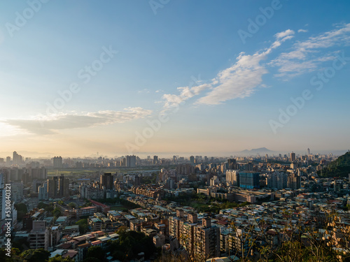 Sunset aerial view of the cityscape of Wenshan District of Taipei from Xianjiyan