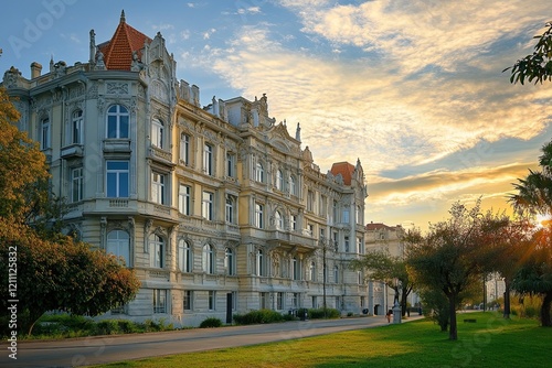 palace, sunset, city, street, building, walk, architecture, urban, park, evening, sky, landscape, travel, europa, vacation, tour tourism, real estate, historic, old, town, house, home, exterior, facades, luxury, elegant, residential, property, city landscape, summer, golden hour, dawn, day, light, nature, scenic, view, background, image, photo, photo