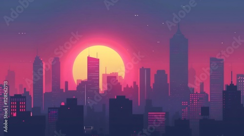 Sunset Cityscape: A Vibrant Silhouette of Urban Architecture at Dusk