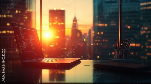 office, laptop, desk, sunset, city, window, workspace, technology, light, build, nature, comfort, profession, skyline, monitor, mood, environment, relaxation, modern, creative, detail, colours, landscape, visual, elegance, skyscraper, offer, ambience, remote, telecommute, vibe, leisure, intention, inspiration, atmosphere, scenery, aesthetic, urban, furniture, innovation, art, design, minimalism, setup, today, professional, equipment, business