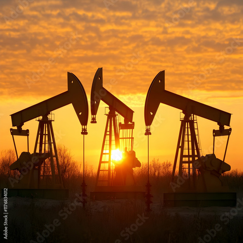 Sunset Oil Pumpjacks Silhouette