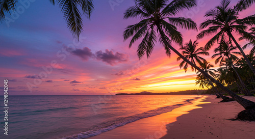 sunset, beach, palm, tree, tropical, sea, sky, ocean, sun, nature, silhouette, island, summer, hawaii, palm, sunrise, travel, coast, evening, landscape, water, dusk, sand, vacation, paradise