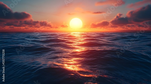 sunset, ocean, wave, water, sky, cloud, orange, vibrant, dark, blue, sea, nature, scene, landscape, evening, gold, hours, sun, light, ripple, calm, serene, peaceful, tranquil, beautiful, dramatic, cloudy, atmosphere, environment, natural, beauty, coast, coastal, view, sunrise, sunbeam, horizon, distance, silhouette, isolated, copy space, empty, space