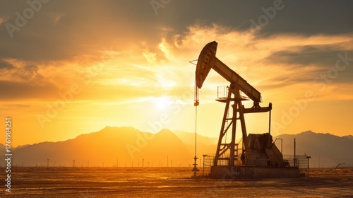 oil, pump, sunset, sky, landscape, desert, industrial, energy, machinery, nature, silhouette, mountain, horizon, atmosphere, extraction, environment, technology, production, crude, oilfield, drilling, night, fuel, economy, pipeline, rural, remote, equipment, sunrise, sun, cloud, shadow, sunlight, scenic, serene, warm colors, twilight, oil industry, operation, crude oil, work, exploration, geology
