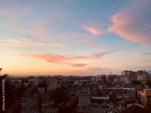 sunset, sky, city, cloud, sun, landscape, orange, cloud, sunrise, dusk, evening, silhouette, blue, night, town, light, nature, red, view, skyline, sea, morning, horizon, building, colours