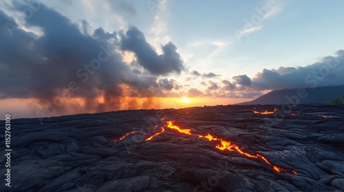 volcano, lava, sunset, sunrise, landscape, nature, fire, hot, heat, rock, stone, dark, cloud, sky, orange, red, night, day, evening, light, glow, warm, energy, power, earth, geology, terrestrial, magma, molten, flow, stream, texture, rough, surface, horizon, scene, view, scenic, beautiful, amazing, spectacular, vibrant, dramatic, intense, extreme, wilderness, adventure, travel, exploration