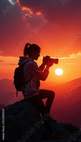 Sunset photographer silhouette against vibrant sky , visual, picture