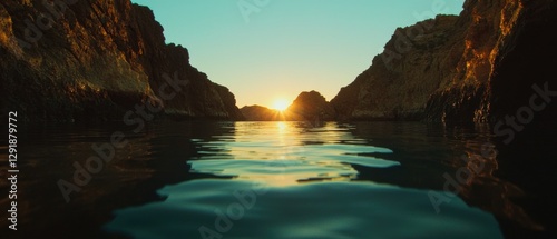 Sunset reflection over calm waters coastal landscape nature serene environment low angle view