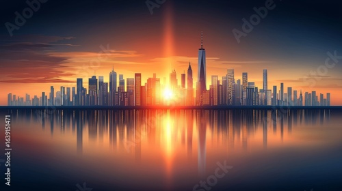 Sunset reflections over a tranquil pond surrounded by modern buildings urban landscape serene view