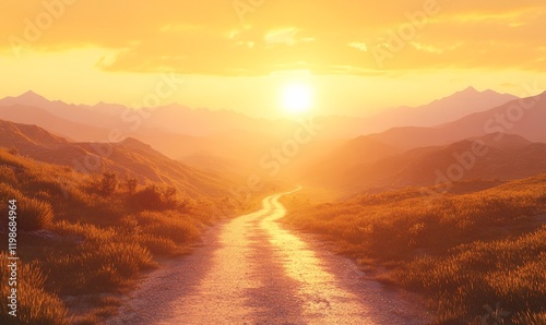 sunset, road, mountain, landscape, hope, journey, adventure, nature, travel, scenic, sun, sky, gold, hill, path, way, view, horizon, light, summer, warm, peaceful, serene, calm, beautiful, amazing, inspiring, freedom, relaxation, escape, discovery, exploration, wilderness, photo, background, image, picture, design, graphic, illustration, element